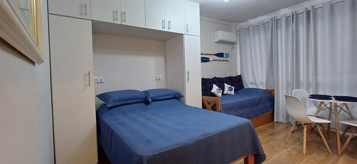 Modern, high-end studio on Itararé Beach! Privileged location. - 5 minutes from the cable car - In front of the airstrip of Asa Delta - 20 Minutes of Porchat Island - 15 min of Millionaires Beach - 15 min from José Menino Beach - 15 min from the Municipal Orquidário de Santos - 15 min from the Submarine Emissary of Santos - 5 min from Habib's Items; -Digital Clock -Wi-fi -Air-conditioned -Micro-ondas -Cafeteira -Secador -TV with Netflix - Furniture and induction stove Bed linen -Toalhas