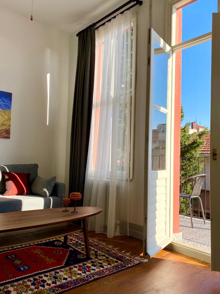 Welcome to our enchanting apartment nestled in a renovated historic building in Yeldeğirmeni, with easy access to everywhere. This space is perfectly suited for up to 4 guests, with a boasting bedroom, a spacious living area, a fully-equipped kitchen, and a clean toilet. The living room features a comfy sofa that transforms into a bed for two, ensuring a peaceful sleep. Enjoy sea and sunset views on the unique terrace, which provides the perfect environment for relaxing and socializing.