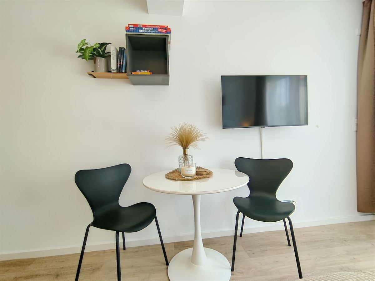 31 m² studio apartment with terrace ♥ Queen-size bed & high-quality sofa bed for 2 additional guests ♥ Terrace with seating area & private barbecue ♥ Modern, fully equipped kitchen including microwave & coffee machine ♥ Cosy dining area for up to 4 people ♥ Smart TV with Disney+ & fast WiFi access ♥ Stylish bathroom with XXL shower ♥ Baby cot & high chair available ♥ Washing machine & dryer in the house for free use ♥ Free parking in front of the door