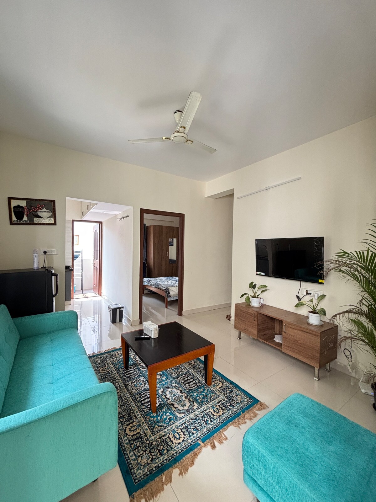 Olive's Tranquil is a cozy 1BHK on Sarjapur Road near popular spots like Vapour Brewpub, Hoot, and Byg Brewski. Perfect for last-minute stays, business travelers, couples, and weekend getaways. Enjoy a stylish living space, fully equipped kitchen, comfy bedroom, and privacy in a secure community. Quick access to IT parks, cafes, malls, and public transport. High-speed internet and major OTT platforms included for your entertainment.