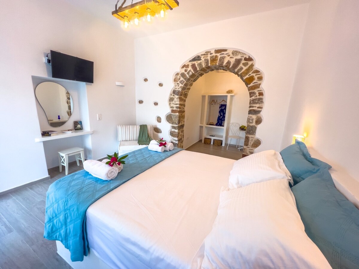 We are beckoning you to come and meet the allure of Amorgos, the island of Big Blue, through the simplicity, tranquility and peacefulness that our accommodation has to offer you. Our rooms, by the sea, in the center of the Katapola Bay, with a view of enchanting sunsets, embraced by the bright Cycladic light, can promise to offer you the ideal break for rest and relaxation during your holidays.