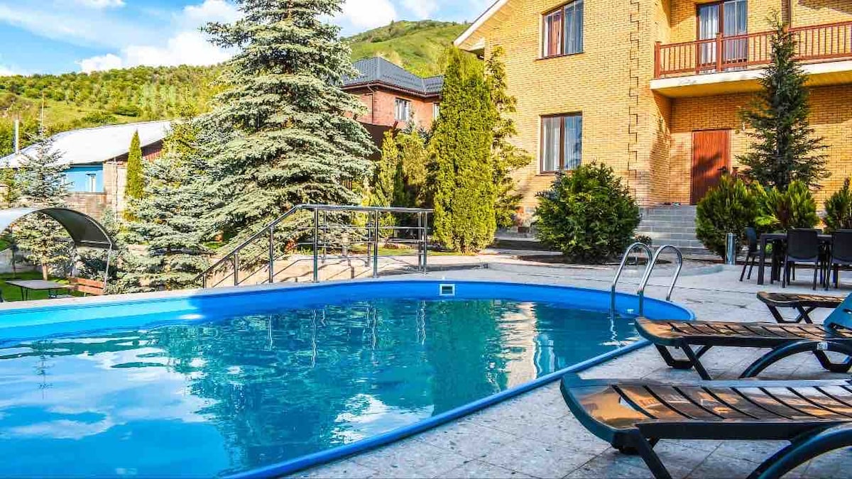 Recharge in this calm and stylish place. A quiet, cozy house 15 minutes' drive from the city center will allow you to enjoy all the beauty and tranquility of the Almaty mountains! Our house has everything you need to spend a few unforgettable days in comfort. The hiking trail to the Kok-Zhailau plateau starts in the immediate vicinity of our house, and a real wood-fired bath with a blizzard effect will allow you to relax after a mountain walk.