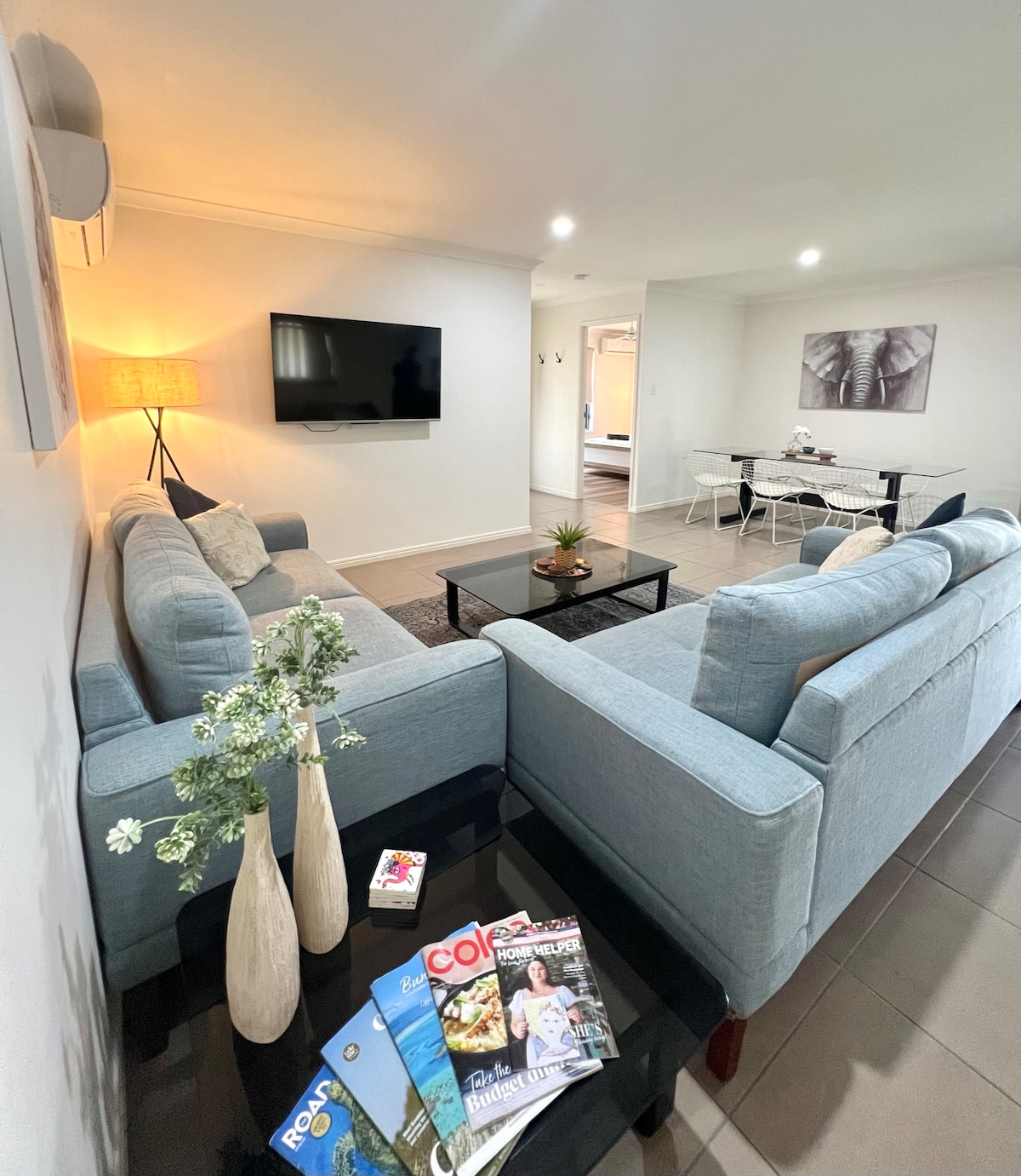 This beautifully presented, open plan, low set, 3 bedroom, 2 bathroom luxury villa is sure to impress. Its fresh modern styling creates a joyful space to relax and enjoy a home away from home. There is free Unlimited WIFI, Smart TV's with Netflix & Disney+, incredible rainfall showers, secure parking and the property is also pet friendly (on application). You can even order gourmet and pampering hampers for your arrival!