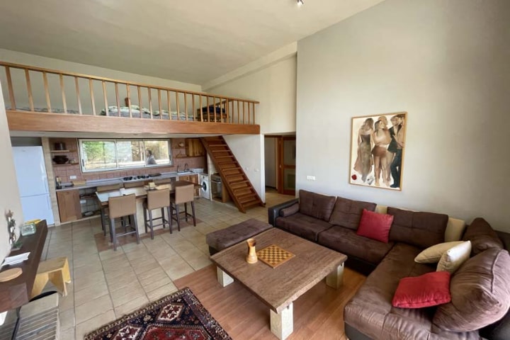 This peaceful place offers a relaxing stay for the whole family. Located in a quiet neighborhood with a beautiful view at the Jabal Moussa nature reserve. A great place to relax. Close to all amenities and nature adventures. Measuring 100 m2 with a terrace, fully equipped kitchen, 20 minutes from the coast.