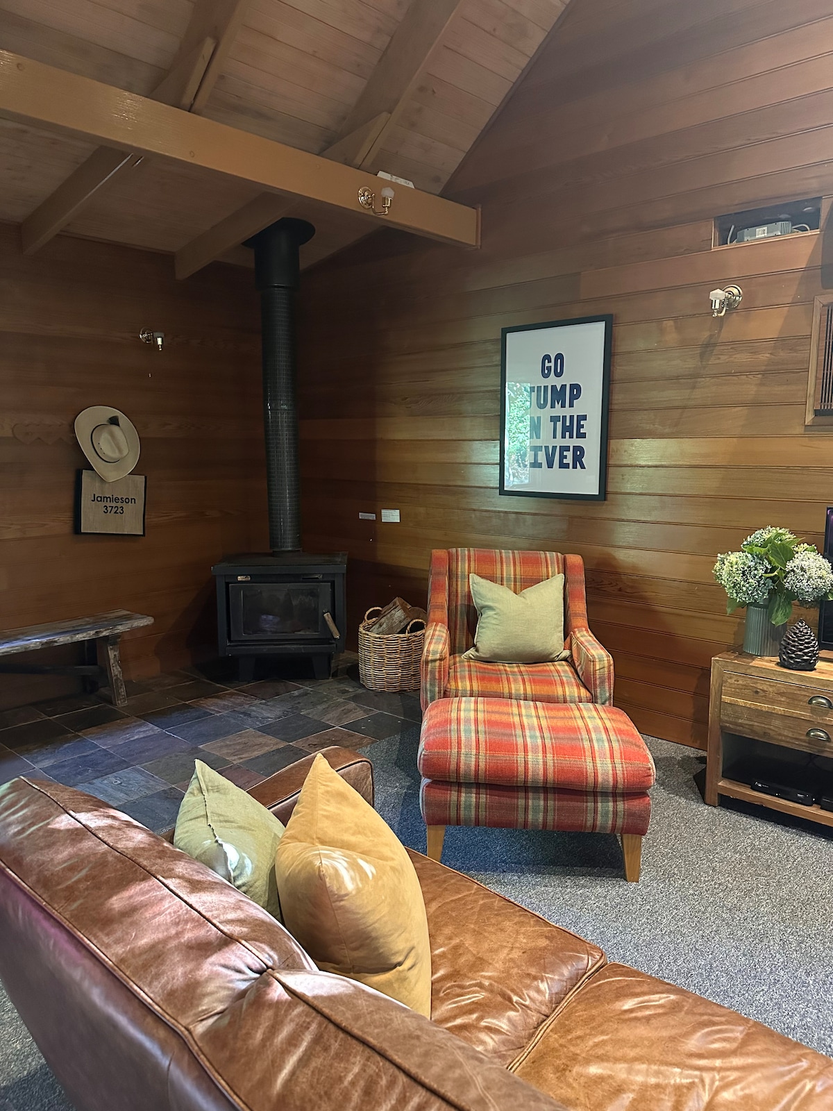 In summer, float down the river in a blow-up tube and on cool nights put your feet up by the wood fire or have a sauna by the river. THIS IS A 2 BEDROOM house which sleeps 6ppl (Entire home). An EXTRA 4 ppl can be accommodated externally to the main house. The A frame hut sleeps two (unheated). An additional 2pp riverside bungalow room with french doors and it’s own deck by the river. Book for 8 people to unlock all rooms. No pets, no parties or camping. Quite after 12am.
