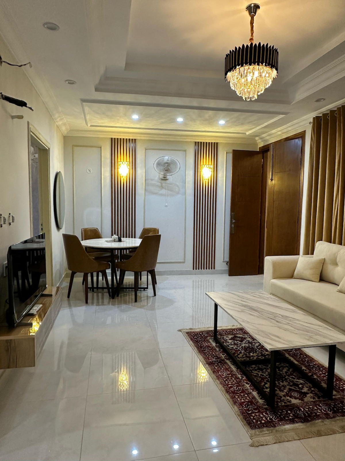 Experience luxury living in the heart of Islamabad’s posh area. Wake up to elegantly styled interiors, private patio, and enjoy high-speed 50 Mbps Wi-Fi, workstation, and 180+ HD channels, and equipped with 24/7 dehumidifier. You will right by the jogging track and just minutes to 50+ eateries and 30+ retail brands. Self-check-in, optional meals and airport transfers add a touch of ease. Traveling with little ones? A cozy toddler cot is ready for you. Your perfect luxury retreat awaits