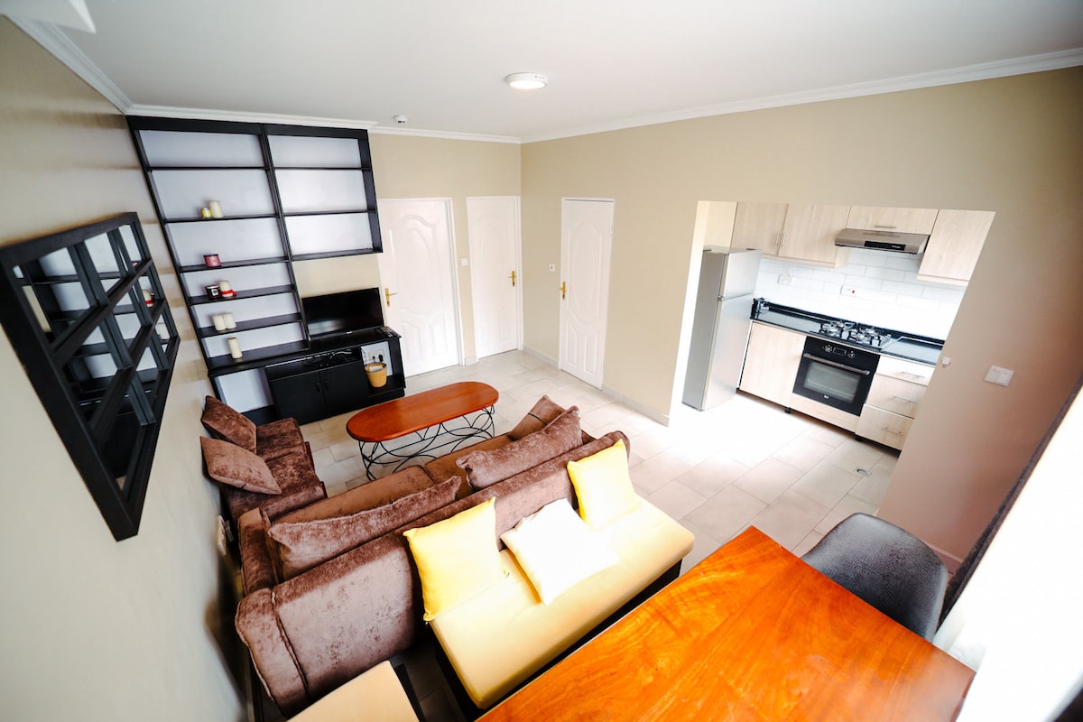 Stay just a 5-minute walk from Kigali’s key attractions, including the Convention Center, KBC Mall, and Kigali Heights, all while enjoying the tranquility of a quiet, tree-lined neighborhood. This modern, fully furnished apartment features 24/7 on-site security. Daily housekeeping and a dedicated service assistant to help with errands and grocery runs, along with fast Wi-Fi. It's the perfect choice for both business and leisure guests who seek convenience without the noise of the city center.