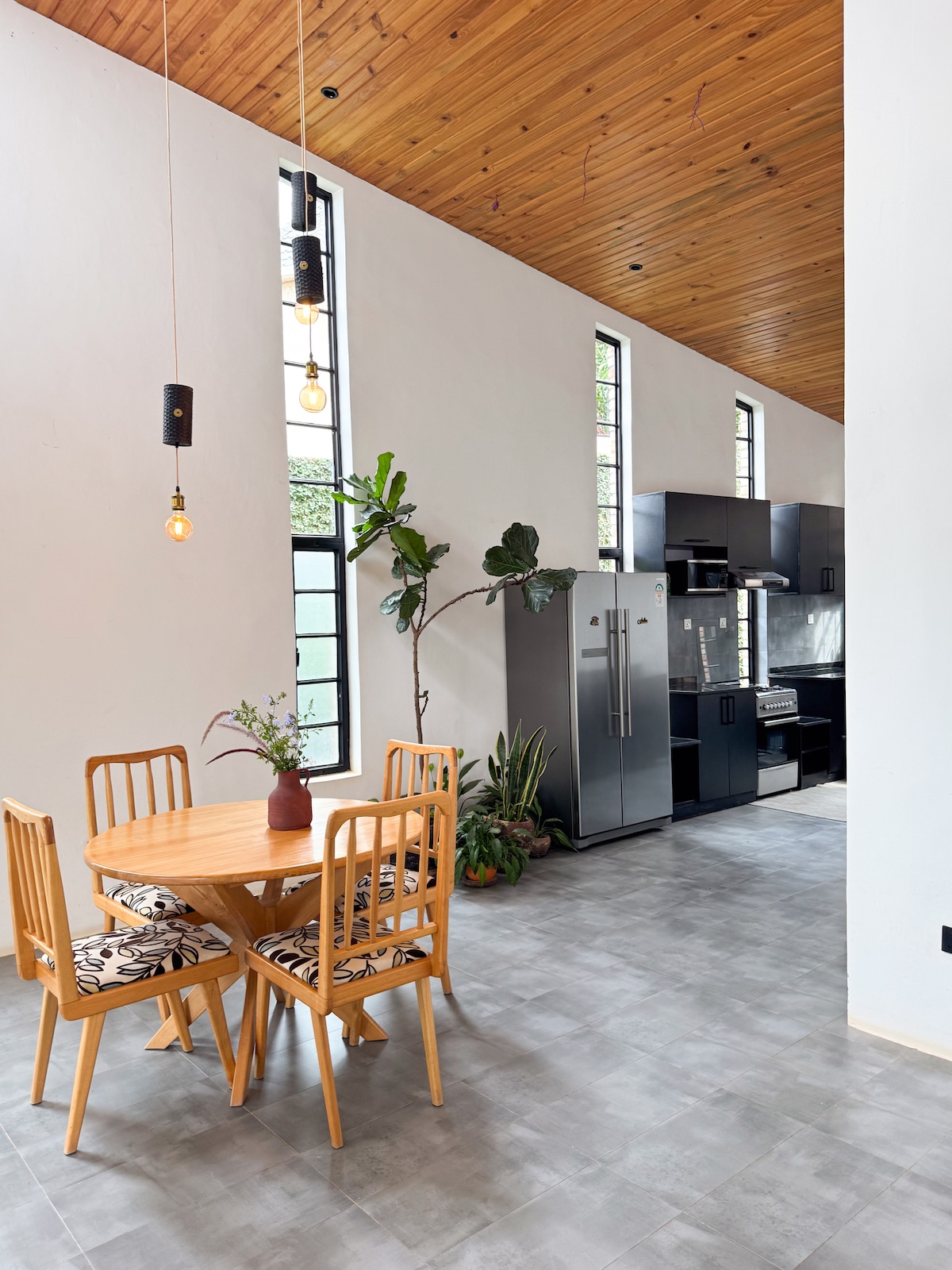 A calm little architectural gem in lower Gacuriro 🌿 This 2-bedroom home sits in a lush green compound with big windows, high wooden ceilings, and that effortless indoor–outdoor flow I love. Clean lines, beautiful proportions, minimal but still warm and inviting. Open living space, two peaceful bedrooms, a leafy terrace, and a housekeeper included (because you’re here to relax, not to clean). It’s simple, intentional, and just feels really good to be in.