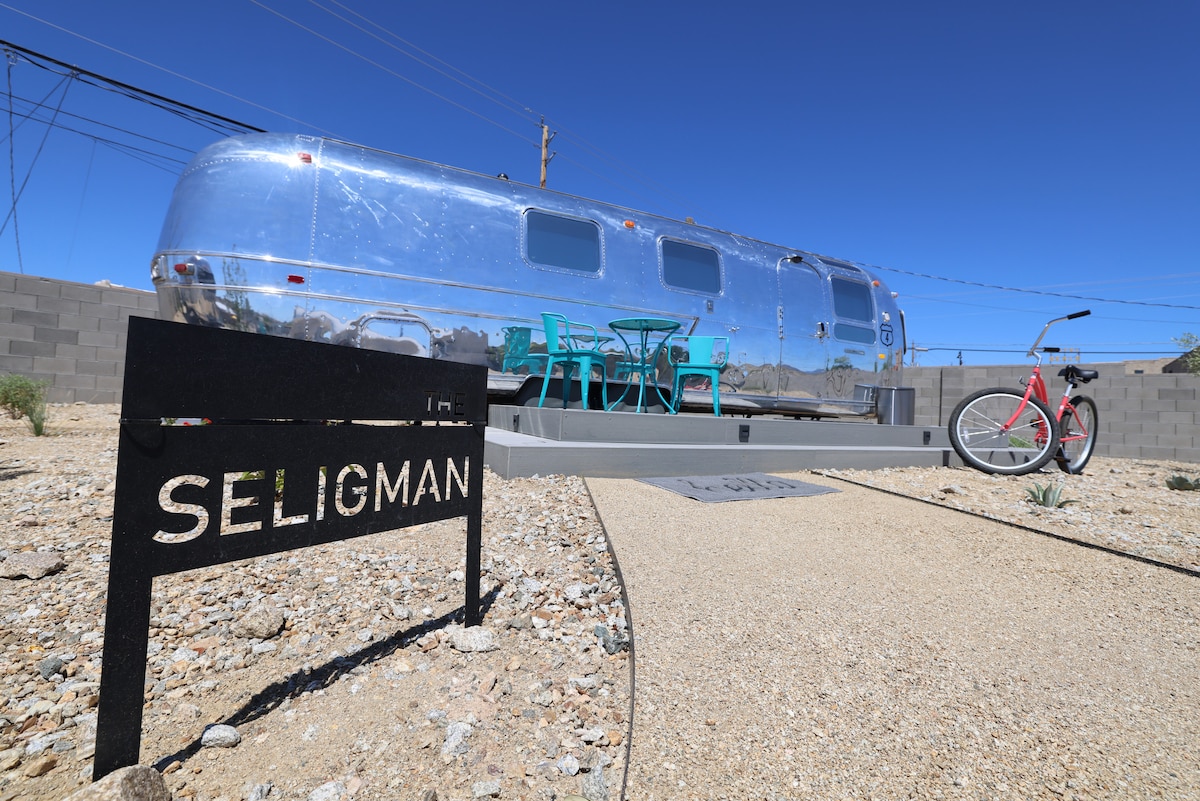 Located in historic downtown Kingman, Arizona on the famous Route 66, Tin Can Alley on 66 is an oasis of vintage Airstreams modernized to provide you with a one-of-a-kind boutique experience. Just steps away from pubs, restaurants, shops, trains, and museums, you will enjoy the sights and sounds of the Route. Be prepared to experience train engines, classic cars, historic sights, friendly folks, murals, and neon in this 1882 railroad town!