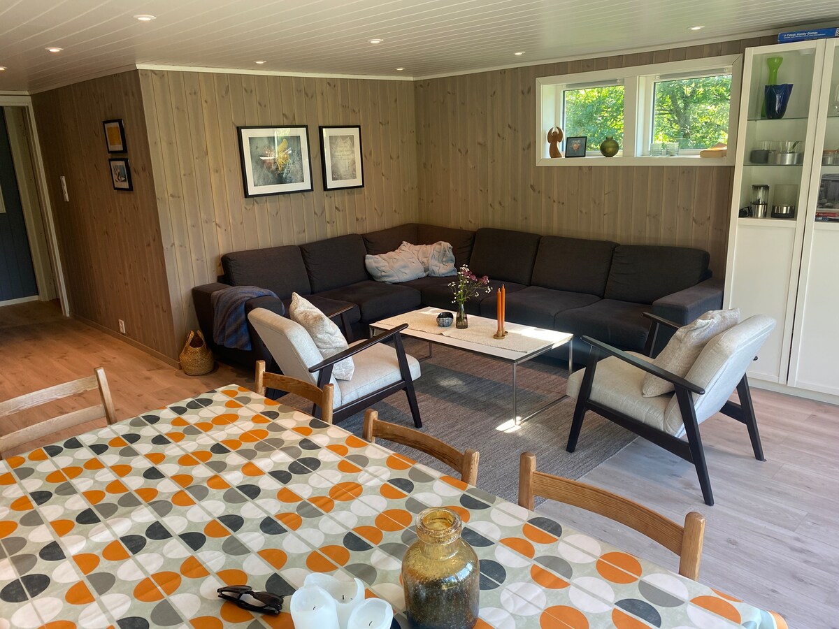 Brand new, modern and cozy cabin, unique location Flekkerøy, Kristiansand. The cabin is beautifully located with proximity to the lake and the forest overlooking Oksøy lighthouse. Right out of the cabin and down the road you will find the beach in the open area in Skylleviga, and there are also rocks and opportunities for fishing and going on great walks. Nice place to recharge your batteries, and child-friendly. The cabin is in a quiet area with families, so we do not want any partying. We want to rent out to families, but other quiet people are also welcome.