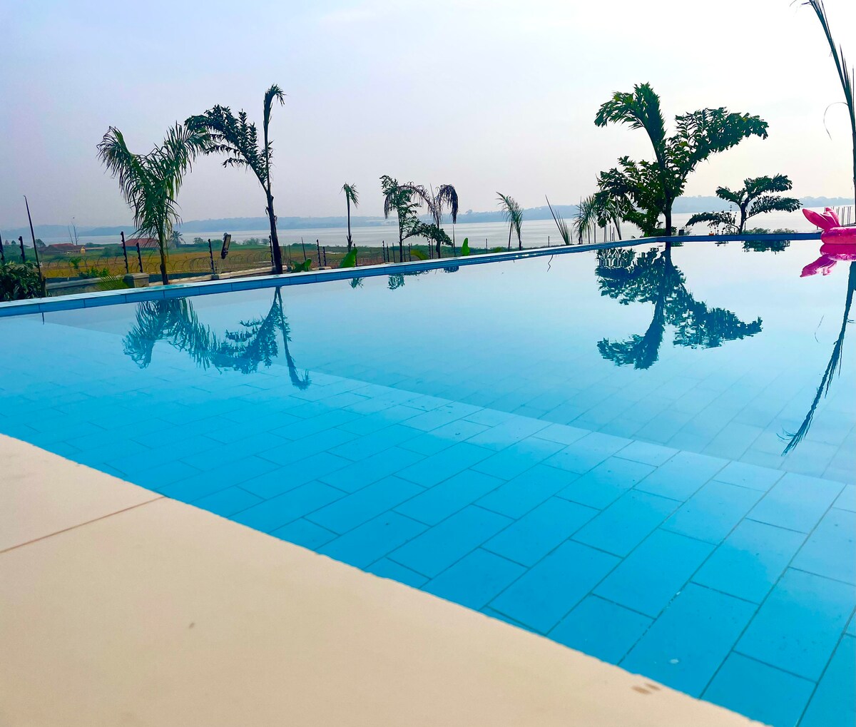 Stunning new luxe style lakeview villas, with free breakfast , 12x6m private infinity pool just outside ,equipped with bistro bar , sauna, steam room, ac, fast Wifi, 70 flat screen digital tv , Netflix , beautiful panoramic glass balconies , 24 hour security , concierge , free one way airport shuttle , ideal special occasions, family trips, honeymoons, residential stays or before & after safari trips, business trips, Entebbe, Kampala and Munyunyo. Perfect discerning business classes