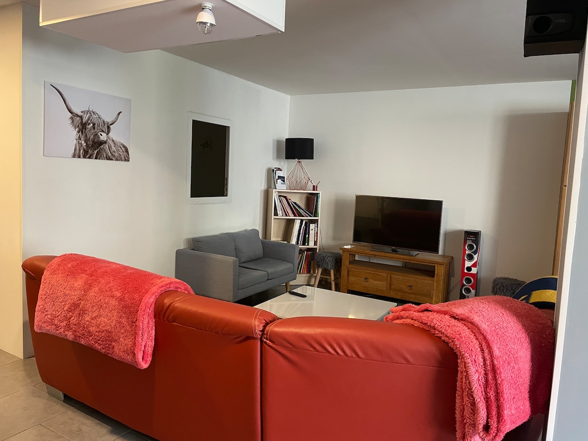 Relax in this new, quiet space 2 steps from the city center. The apartment is designed to offer you a comfortable and pleasant stay. With its simple and elegant design, it offers a welcoming atmosphere. The living area is carefully furnished, the kitchen is fully equipped, you will find everything you need to prepare delicious meals. The suite offers a comfortable bed as well as a shower, and all the necessary bedding and toiletries.