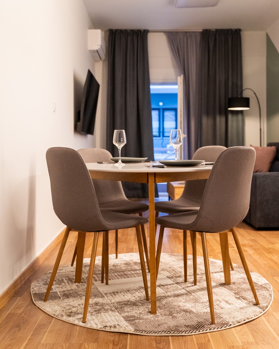 Charming freshly renovated studio with a fully equipped kitchen and air-conditioning is waiting for guests. Just 300 meters away from the sea, it is situated on the 2nd floor of the quiet building with an easy-to-find free public parking on the streets nearby. Perfect for you if you are planning a beach getaway in summer, but also mountain walks in Trikala villages, visiting Ziria ski resort in winter or exploring the Area Synest theme park.