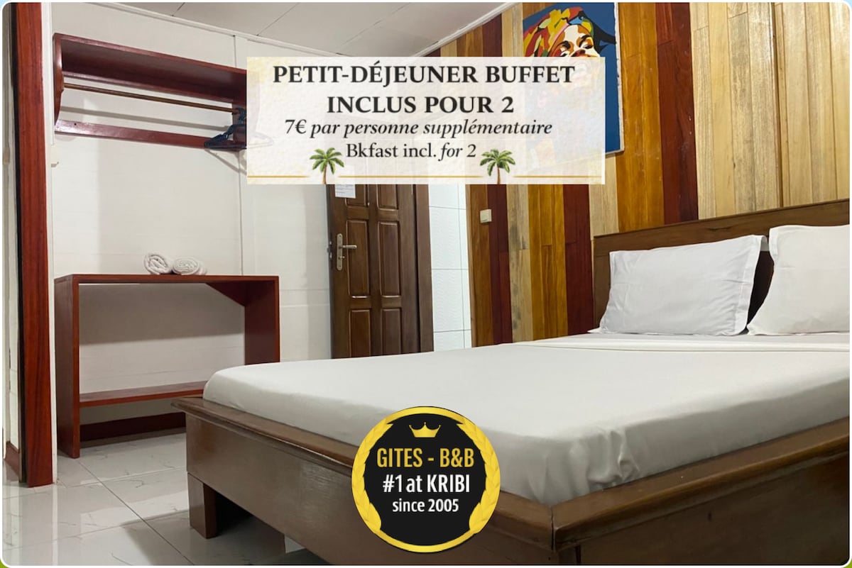 Feel at home elsewhere. Furnished 1-bedroom apartment for 2 people (possibility of providing an extra mattress for 2 additional people for an extra charge), ideal for a weekend as a couple, in a private residence of 1500 m2 composed of 4 apartments by the sea in Kribi, Cameroon. Possibility to book the entire residence (subject to availability), for this contact us. Total accommodation capacity of the residence is 12 people.