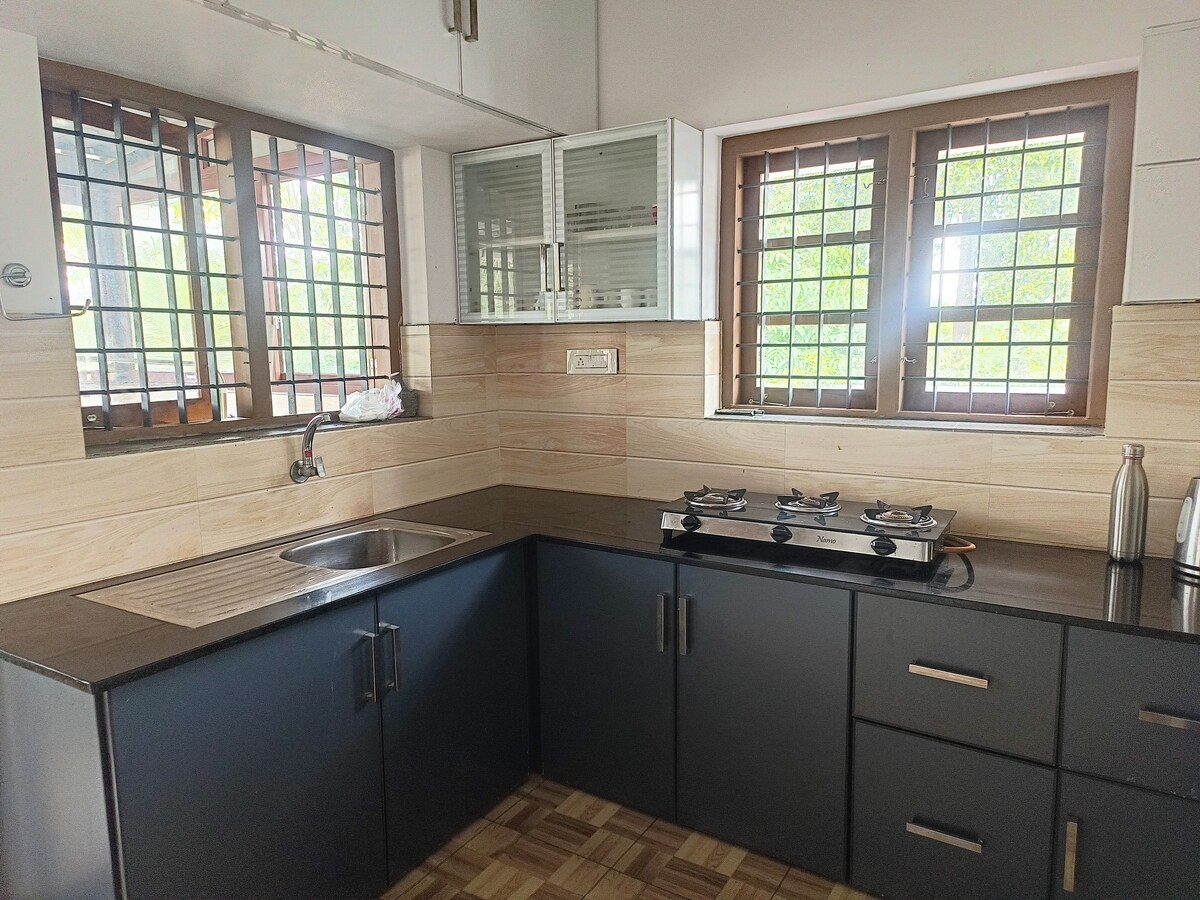 🌿 This elegant 2BHK fully furnished villa is one among the two villas in a gated 40 cents compound. 🏡 Convinentely located near Highway connecting Cochin International Airport and Ernakulam. A short walk to Metro Station, offering quick access to the city's top attractions. 🛏️ Highlights: Private gated compound with ample parking space. Ideal for families seeking safety, comfort, and convenience. Note: We welcome family groups only. For other guests, please message us before booking.