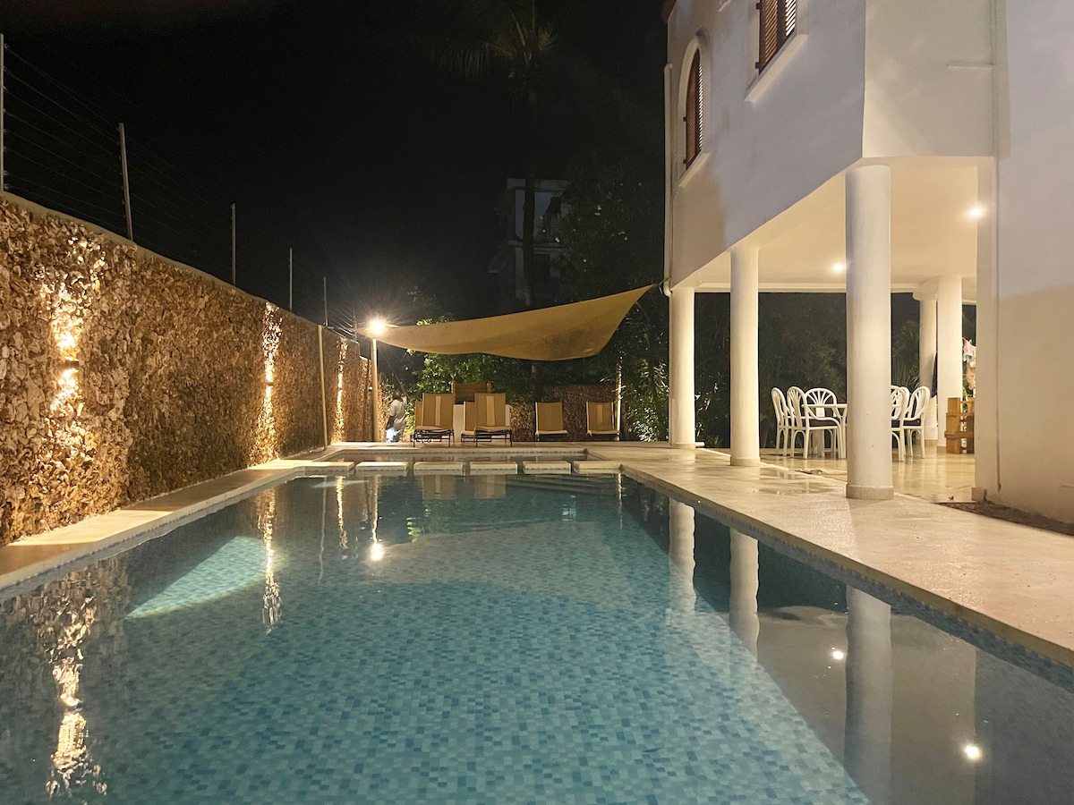 Att: There is new construction at the plot next to us. Little noise gets you a great price. Our newly built luxury home offers the best of Diani with a 2-minute barefoot walk to the white sand beach or 5 minutes out the gate for groceries and drinks. 4-bedroom residence includes a private pool, Chef's kitchen, gas grill, BIG TVs, and 1.5 meter Pool Table. The entire main house and guest house are air conditioned with amenities for a great holiday break. Welcome to beautiful Villa Diani 11.