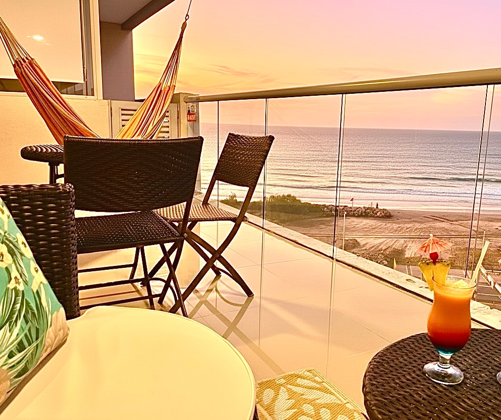 Welcome to a Stylish Corner Apartment with stunning open sea views. Breathtaking sunsets. Come enjoy a home away from home. Pleasant and relaxing vibes. Full Size Kitchen. Just 50 yards distance from the building entrance to the beach. Amazing location with everything at your fingertips in this 24 hour doorman building. Groceries, convenience stores, wine stores, pharmacies, restaurants, and much more. Easy 5-10 minute commute into the old colonial city.