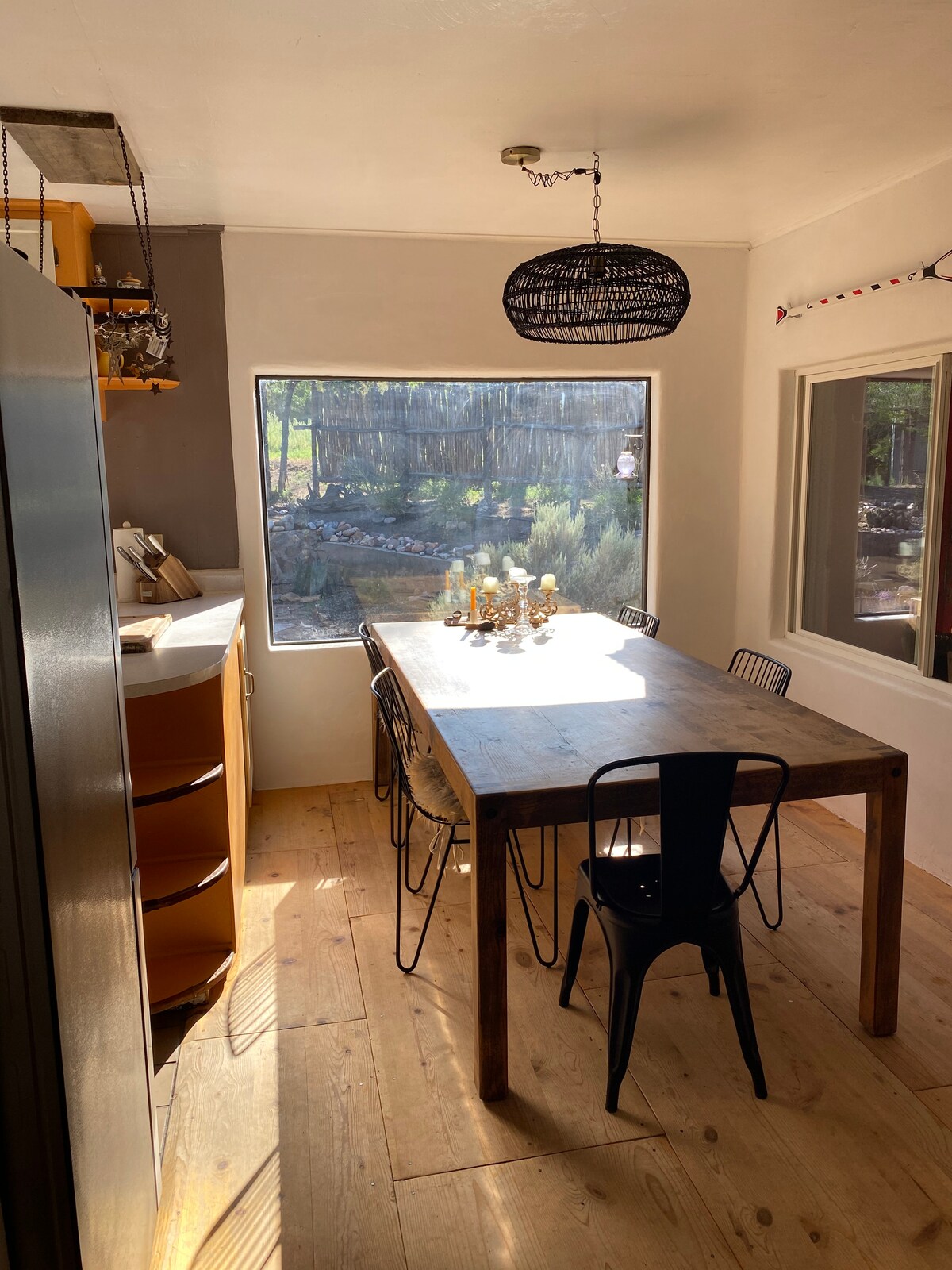 The Ojo Mystico Solar Adobe Ranch House is a magical one of a kind eco-lux retreat located in Ojo Caliente, and Carson National Forest. A spacious 1200 sqft open studio style ranch house sits on 21 acres with the most enchanted views anywhere in Northern New Mexico, 5 minutes to Ojo Caliente Hot Springs, peaceful privacy, galactic night skies, fast fiber-optic wifi, large open kitchen, indoor/outdoor hammock chairs, and tranquility able to calm the wildest of spirits, and sooth the heart & soul.