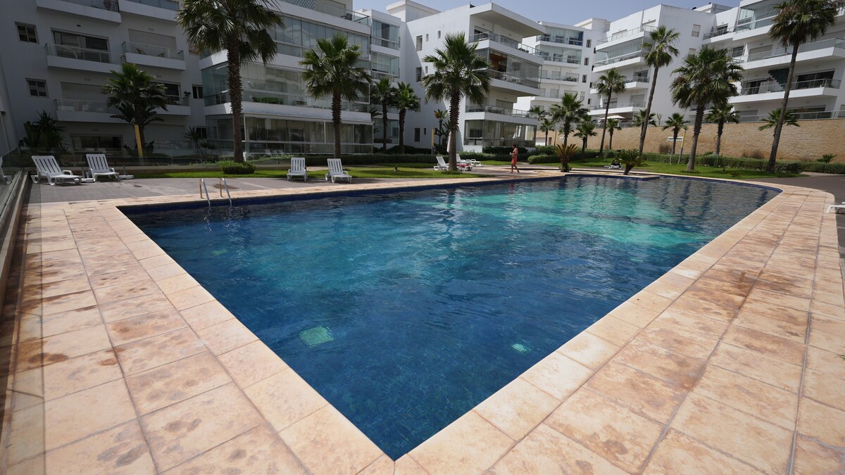 ✨Somptueux appartement à Résidence Costa Blanca, Tamaris!✨ Magnifique appartement , offrant confort et élégance, idéal pour des séjours relaxants en bord de mer. Situé dans une résidence sécurisée avec 6 grandes piscines, espaces verts, salle de sport, kids club, parking privé et accès direct à la mer. Cet appartement est parfait pour les familles, amis ou professionnels à la recherche de détente et de bien-être. Cadre moderne et paisible à 15 min de Casablanca et a 1 min des commerces.