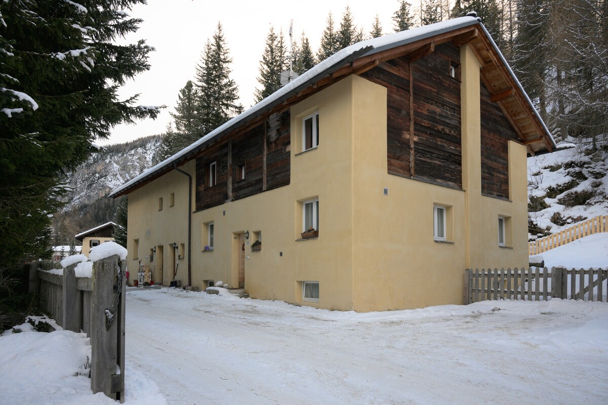 No Wi-Fi in the quiet attic apartment, but a large window front with unique views to the mountains of the Upper Engadine. The house (Chesa) Prünella is located on sunny Albulahang, about 15 km from St Moritz. The apartment is very cozy, comfortable and well maintained! Free fast internet in and around the community house in Chamues-ch.