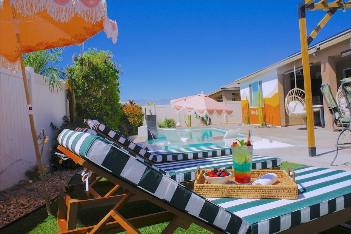 Nestled against the backdrop of the beautiful San Jacinto mountains, our retreat offers a luxury getaway surrounded by palm trees and clear blue skies in the heart of the Coachella Valley. Conveniently located near Palm Springs, Acrisure Arena, Joshua Tree, Indian Wells Tennis Garden, PGA West Stadium Course, El Paseo Shopping District, Agua Caliente Casino, and Empire Polo Club. This sanctuary provides quick and central access to the vast desert wonders and surrounding city experiences.