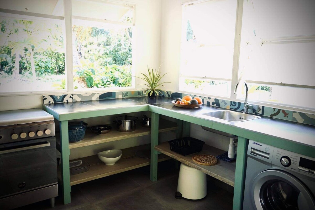 Private home on hillside overlooking Opunohu Bay Two Bedroom 1.5 Bathroom Fully equipped kitchen renovated in 2025 Living room Wrap around deck with patio furniture and 2 loungers Bbq Washer and Dryer Home is ideal for couples, solo adventurers, business travelers, and families. **Moorea charges a city tax of .60xpf per PERSON per NIGHT. This is not part of the nightly rate and will need to be collected in cash upon arrival**