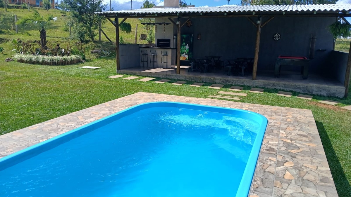 Relaxe com toda a família nesta acomodação tranquila. Dispomos de uma casa mobiliada,piscina,açude para pesca, área externa com edícula, churrasqueira,lugar tranquilo para curtir com a família.