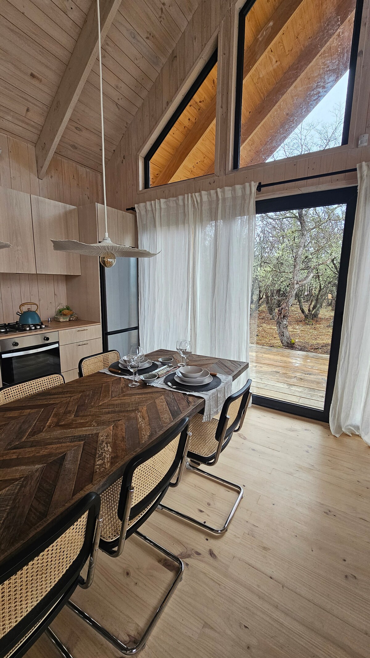 Ventana al Castillo es una hermosa cabaña de madera nativa con una vista privilegiada al Cerro Castillo y Parque Nacional. Amplios ventanales en living y dormitorios integran la montaña al interior de la vivienda. Su diseño rústico y acogedor, la calefacción a leña y los detalles cuidadosamente seleccionados invitan a un descanso profundo. Rodeada de bosque nativo, coigües, ñires y lengas, el lugar ofrece privacidad, silencio, contemplación y una conexión única con la Patagonia.