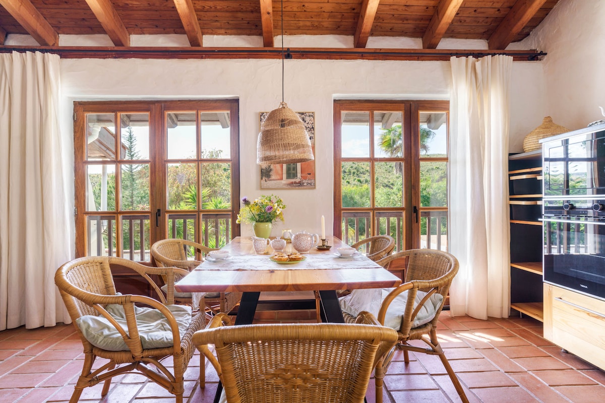 The sunny south end of The Greyhouse has been lovingly renovated into a bright and spacious ground floor one bedroom apartment. It has its own entrance and private gated parking. Enjoy two large sunny private terraces overlooking a pretty garden and rural views beyond. Our location is ideal for those looking for an out of town secluded position however, only 1Km from Lagos and all it has to offer. Your super-hosts Carole and Owen are happy to share their local knowledge.