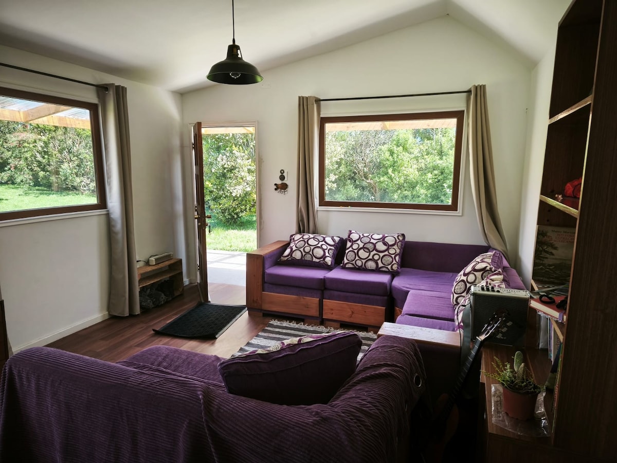 En medio de bosque nativo, con río para disfrutar, pescar y bañarse. Los amantes de las aves lo amarán, avistamiento de diversas especies. Ideal para desconectarse de la vida de ciudad y el stress. Según los visitantes es un paraíso, cercano a muchos puntos turísticos, lo que permite hacer salidas por el día.