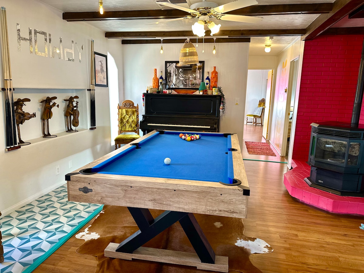 Minutes from Antelope Canyon and Horsehoe Bend, this stylish home is centrally located while still just off the beaten path. Walk to everything in downtown Page, hike the Rim View Trail straight from your doorstep, dine al fresco under the stars in your spacious, private yard and shoot some stripes (or maybe some solids) all from the comfort of your newly refurbished living room. Take a trip in the desert *er* a trip to the desert in this stylish Western escape.