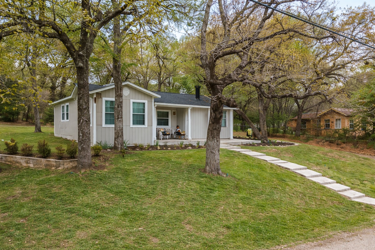 Welcome to The Cozy Cottage! Enjoy your time at this adorable, private, beautiful oasis, tucked away & surrounded by gorgeous crape myrtle’s, with an outdoor fire pit & seating area, amazing Texas sunsets from the front yard, and twinkles from the stars in the backyard! The ultimate getaway! Walk across the street to Inspiration Point with some of the best hiking trails in the DFW area. Location is 10/10 and the coziness of the hand picked furnishings and decor make this an unbeatable stay!