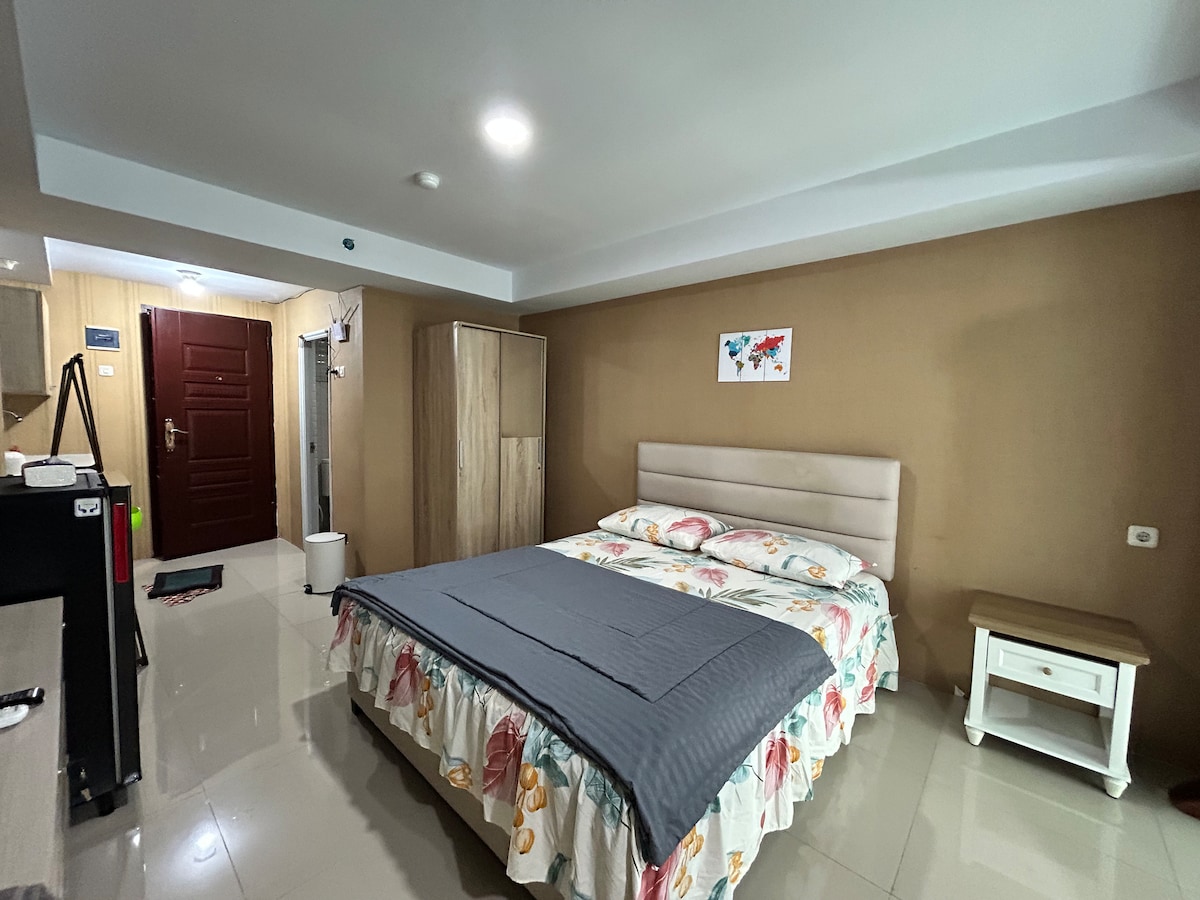 STRATEGIC APARTMENT location close to city center complete with air conditioning, Wi-Fi, TV-Streaming, kitchenette, water heater, swimming pool and gym facilities. Perfect place for single/couple stay. The room has balcony so you can get sightseeing the city or just take fresh air. Close to your daily needs; Restaurant & Cafe, Market, Laundry, ATM Centre or digital printing within 500m only. The room is ready for short-term or long-term stay with huge discounts (>28 days)
