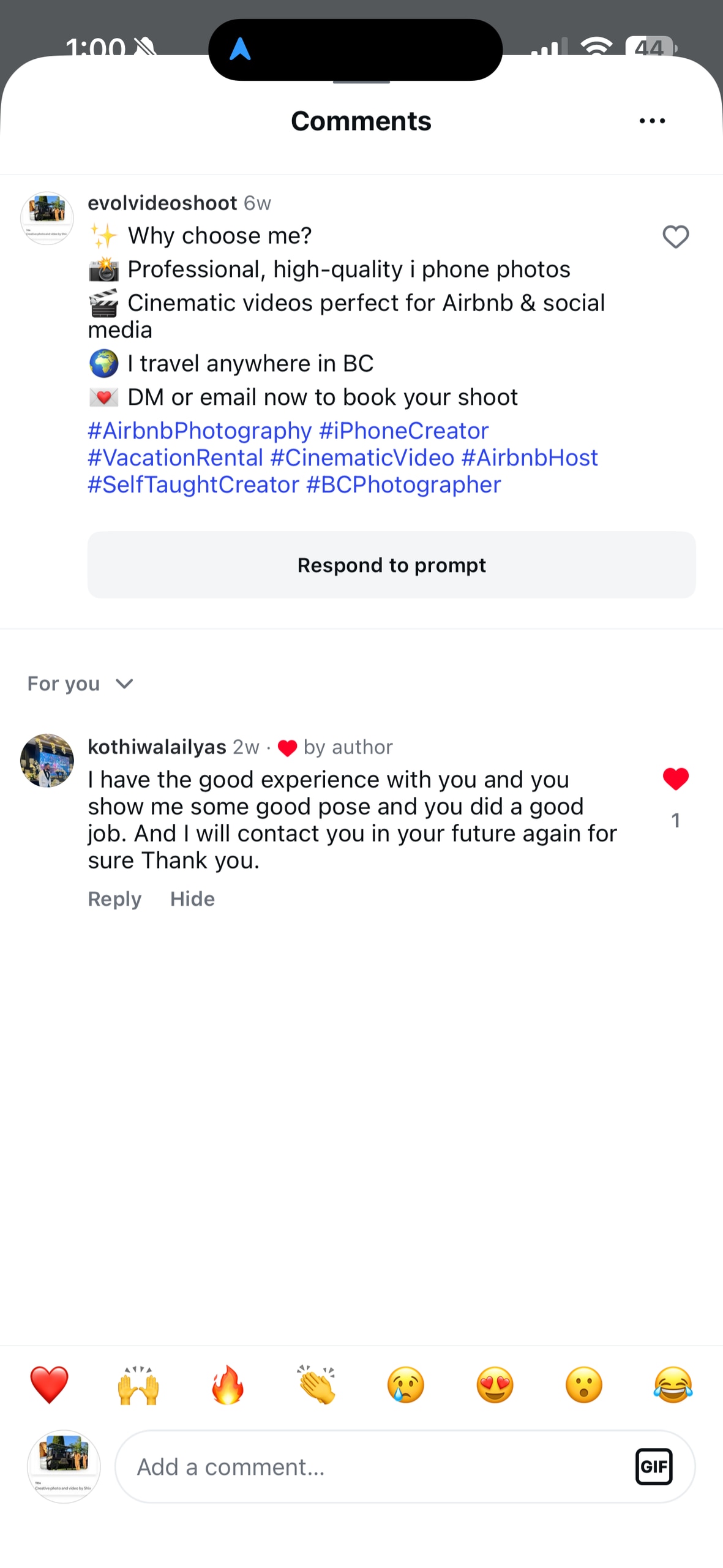 I've worked on high-end events and promotions, with quality photography and videography.