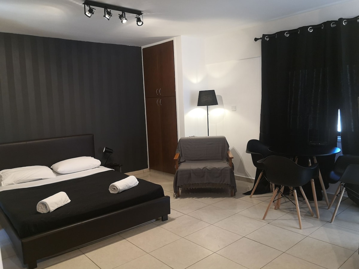 Kick back and relax in this calm, stylish space. Our sunny studio oasis is perfectly located in a quiet residential building in central Larnaca. Enjoy easy access to the Metropolis Mall and the beautiful Larnaca Finikoudes beach, just a 5 minute drive away. The airport is conveniently situated a short 12-minute drive from your doorstep. Our apartment is an ideal base for exploring all that Larnaca offers, with easy access to highways connecting you to Nicosia, Limassol, and Ayia Napa.