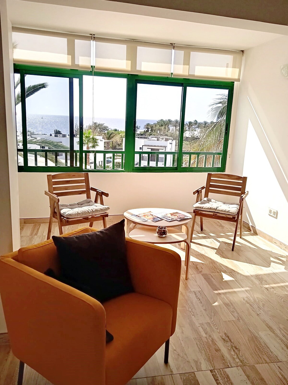 Beautiful newly renovated studio in Costa Teguise, located in the Playa Roca complex, directly on the marvelous pedestrian promenade which can be accessed through a private gate and leads to Playa Bastian in less than five minutes. The studio has a double bed, a sofa bed and a fully equipped kitchen. The complex has common areas such as a swimming pool with sun beds, green areas and a poolside bar, there is a convenient parking area in front of the building.