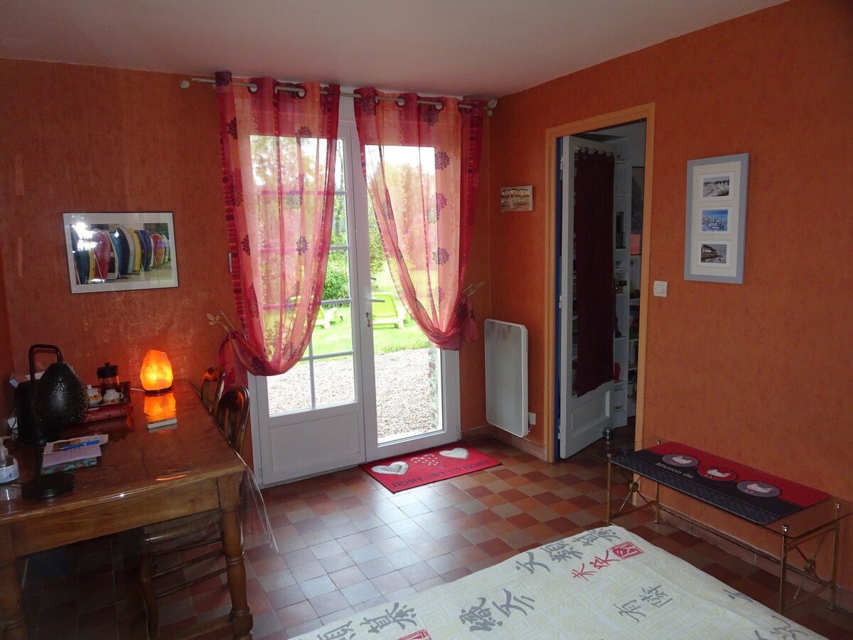 1 atypical guest room for 1 to 4 people in an old independent chalet at the bottom of the garden. Comfortable, shower, WC, TV, 1 bed for 2 people and 2 single beds. Peace and serenity . 2000m² parish priest's garden, zero pesticide for more than 30 years. Crafts on site. Breakfast included on the veranda of the house or outdoors when the weather is favorable. Possibility of table d 'hôtes by reservation. Norman meal €20. Cooking is not possible in the bed and breakfast