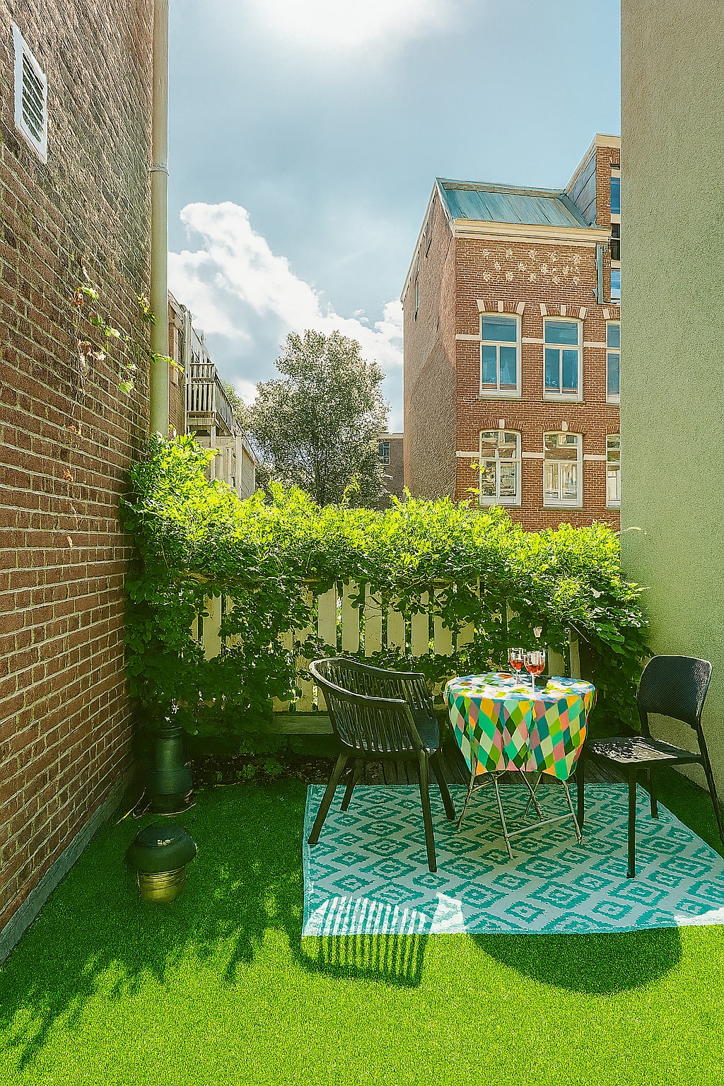 Studio Huis Roomolen is located at Roomolenstraat in the center of Amsterdam, a little street beween canals, yet; in the middle of things. Three large windows give a nice view over the Roomolenstraat. The size of the luxurious studio is 26m² including private kitchen, shower and toilet. Private roof terrace of 10m² at the backside enclosed by the neighbor buildings. The place is very warm and personal, perfectly suited for a single traveler or couple to retreat as well as to discover Amsterdam.