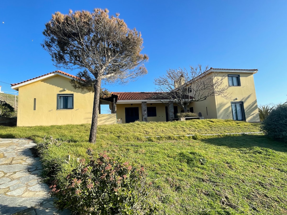 Horizon villa is a stone house at the top of a hill over Portianou village, with an astonishing view to south, over Moudros and Diapori bays. It is located in a yard of 3000 m3. Offers privacy and plenty parking space. In the village, ''Portianou'' your can find a bakery, a tavern, a butcher and minimarkets. 5 min driving from one of the best beaches of the island, ''evgatis''. 10 min from airport and 15 min from the capital Myrina. A lovely and easy to live and enjoy vacation villa.