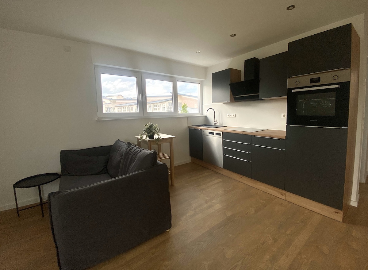 Our 1.5-room apartment is centrally located in Renningen. The apartment is new and is characterized by the perfect blend of location and charm. The train station is a 5-minute walk away and takes you directly to Stuttgart and Böblingen S6/S61, among others. Shops (bakeries, butchers, supermarkets, etc.) are within walking distance. The stylish bathroom with rain shower and in winter the fantastic underfloor heating give a cozy feeling.