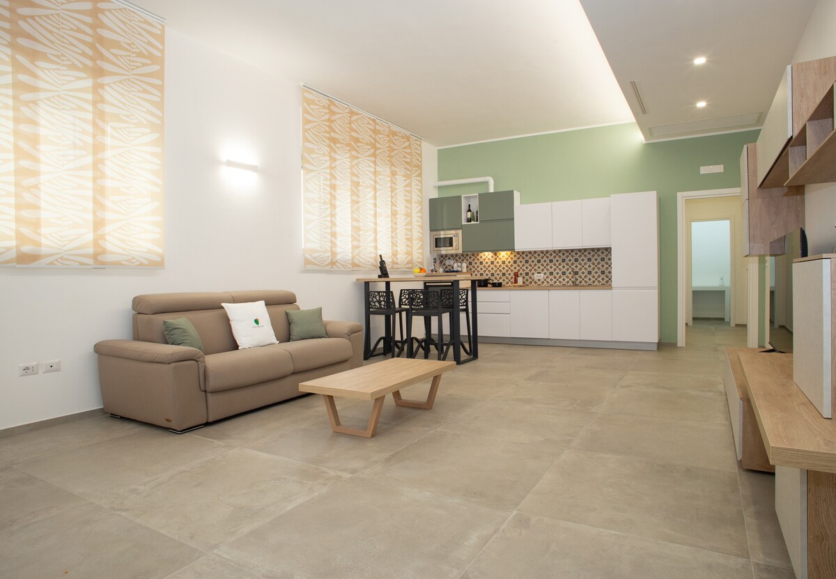 A unique experience of relax in a Sea View finely furnished apartment. The building is located directly in Torre Ovo’s bay, in the province of Taranto. The apartment has: custom designed furniture; one bedroom with queen size bed and a very comfortable sofa bed in the living room; direct access to the private beach with 2 sunbeds and one beach umbrella included in the price of the apartment; private garden; and offers various extra services as: private chef; boat excursions, Beauty Treatments.