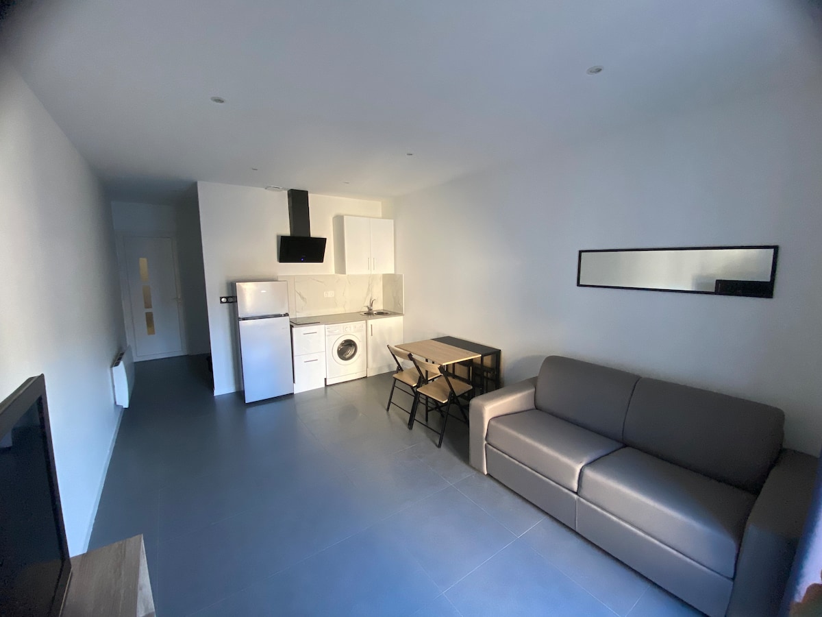 Ideally located, with a driveway that offers free parking. Completely renovated studio with either two beds of 80x200, or a queen bed of 160. Kitchen area, bathroom with a shower. Montbrison, capital of Forez, is rich in its historical heritage: collegiate church, ramparts,... but was also voted the most beautiful market in France in 2019 (Saturday morning) Savigneux with its pond and golf is 10 minutes away Chalmazel and Praboure, two ski resorts 30 minutes away