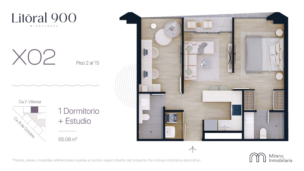 This cozy apartment is ideal for relaxing and/or working. With a modern queen-size bed with a projector and a comfortable walk-in closet, every detail is designed for your comfort. The living room has a 60” TV for you to enjoy your favorite series, and a desk with a whiteboard to inspire you at work. The kitchen is fully stocked, and the building offers incredible amenities such as a swimming pool, grill areas, multipurpose areas, laundry, and a space to bathe your pet.