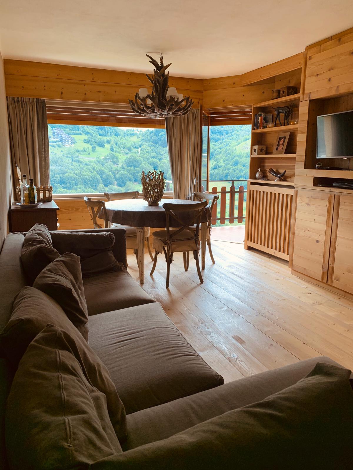 New Apartment in a wooden chalet, just build end of 2019, ski-in & ski-out , at just few hundred meters walking (or skiing distance) from the slops. 3 bedrooms, 2 bathrooms, leaving room, fully equipped kitchen , large terrace and covered parking place. Everything is new.