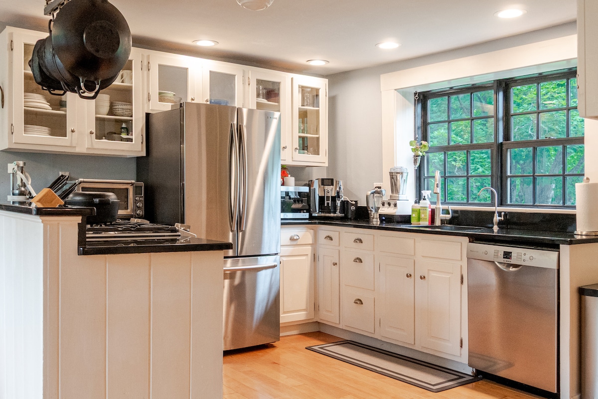 Welcome to Grove Street Studio - our detached guest house which sits right behind our home on one of the most beautiful streets in the area. This two-room studio has everything you need for a comfortable stay including your own deck looking out to the woods behind. Perfect for for a hotel alternative for someone working temporarily at nearby businesses.