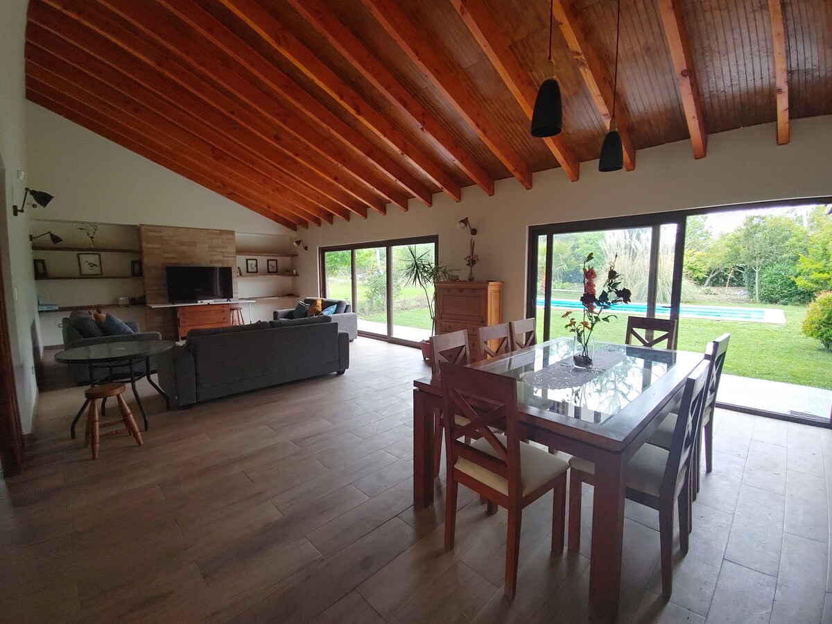 A spacious house with a beautiful connection to nature and the tranquility of the countryside, and best of all, close to everything. You'll have the necessary amenities to enjoy a well-deserved family break and visit the picturesque village of Punta de San Francisco de Mostazal. It's the perfect place to escape the routine or the suffocating heat of the city, to enjoy a few days of pool and recreation. 80km from Santiago, near Picarquin, Autodromo and Monticello Casino.