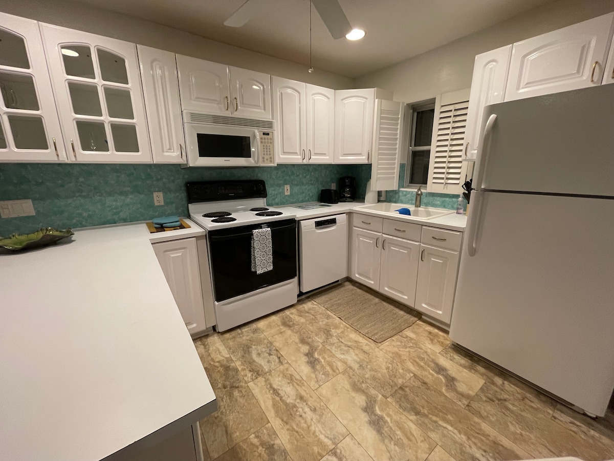 This apartment is a 2nd story unit with vaulted ceilings in the living room and an open floor plan that sleeps 2 with a maximum of 4 people. The bed makeup in this rental is a king bed in the master and a queen size sofa sleeper. This rental is great for longer stays or guests who like to cook since you have a full kitchen and all the items to cook any meal. There is also a washer/dryer in the apartment private for your use. Beach chairs and umbrellas are supplied to you at no charge.