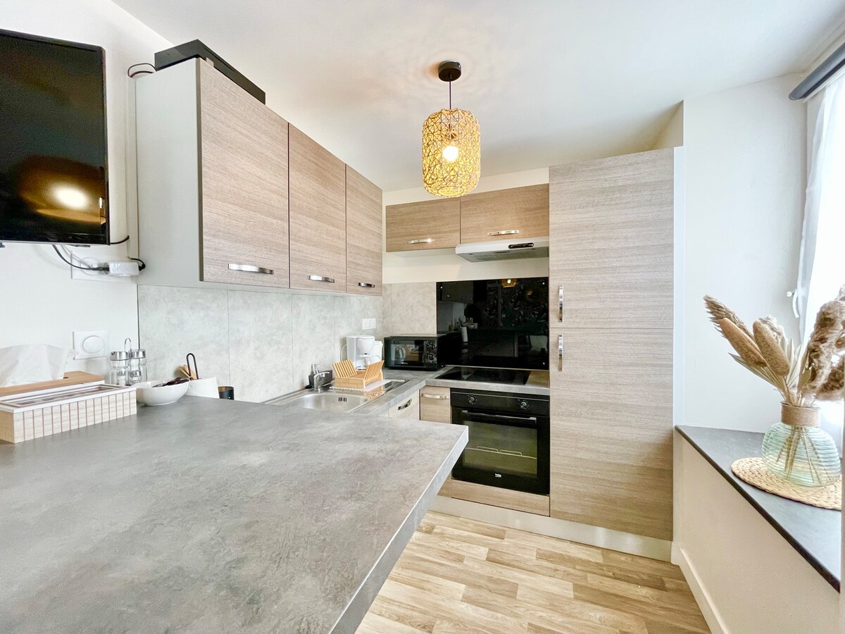 On the top floor of a 4-story building from the early 1950s, come and enjoy this charming 48 m2 one-bedroom apartment on the rooftops of Lorient (no elevator access). Completely refurbished and fully equipped, it will seduce you both by the quality of its interior and its functionality. It's a quiet and bright apartment with remarkable views. Its strategic location in the city center makes it easy to access multiple amenities.