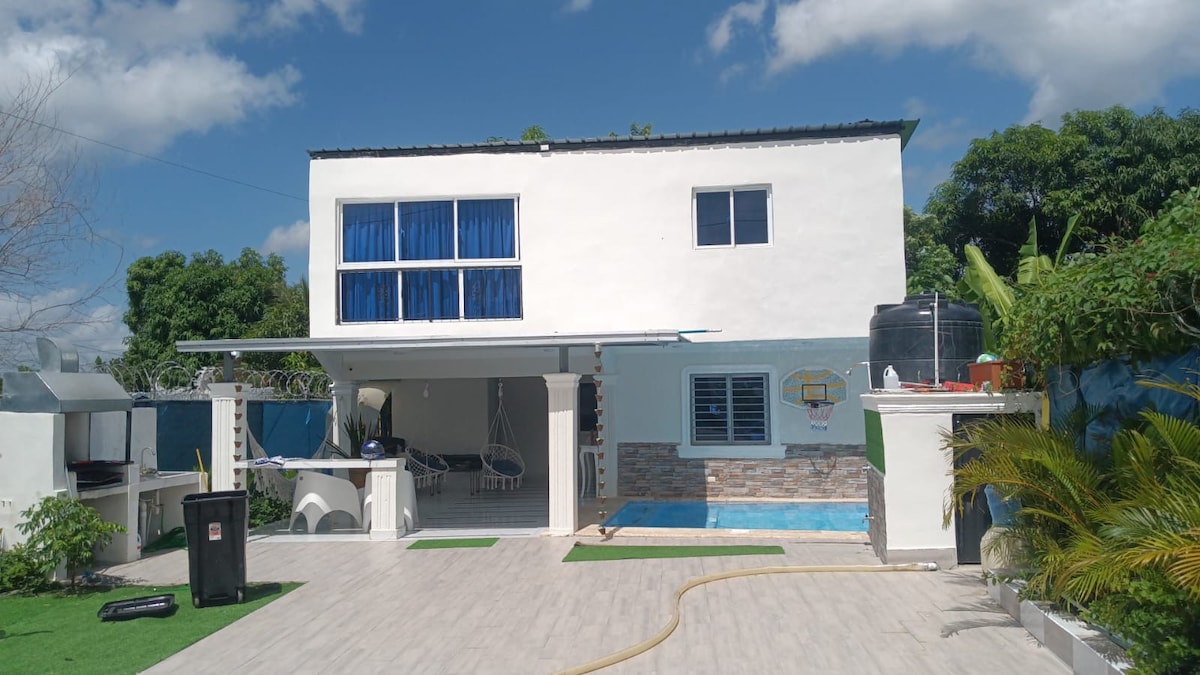 Diviértete con tu familia o amigos en esta espaciosa casa para 7 personas! Ven y disfruta de una cómoda estadía y de las amenidades que te ofrecemos como nuestro Jacuzzi para hasta 7 personas, un amplio patio con BBQ de carbón listo para usarse y una decoración 100% para Instagram. Estamos cerca de las cadenas de supermercados mas grandes del país y a menos de 15 minutos del centro de la ciudad. 5 mins de la embajada estadounidense 25 mins de la Zona Colonial 50 mins del Aeropuerto SDQ