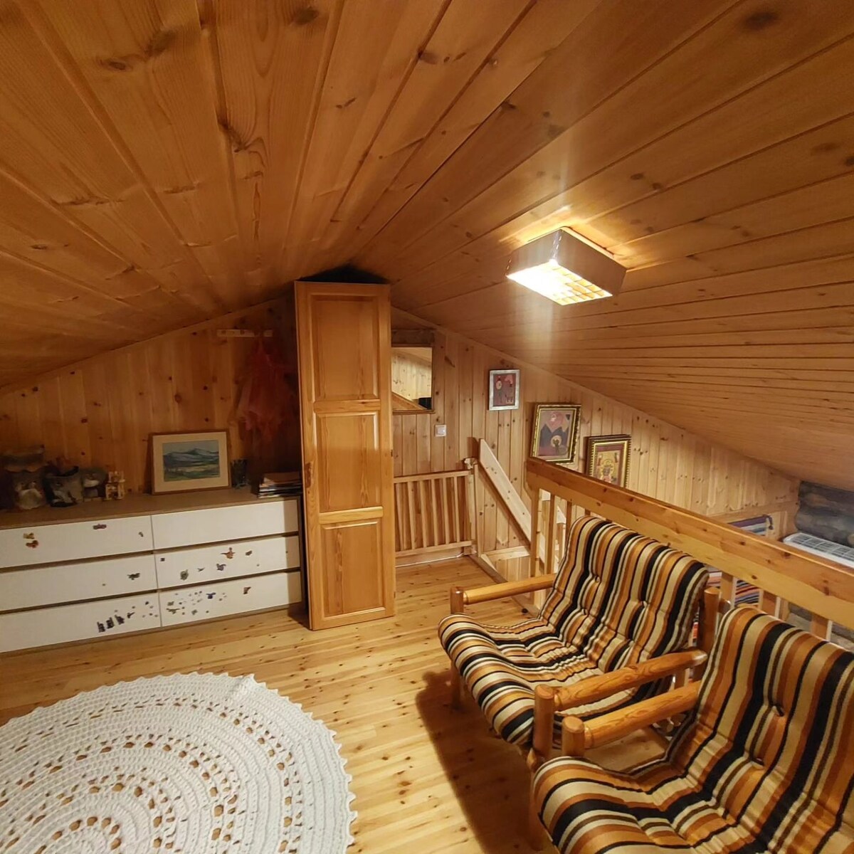 Between two fells, under the shelter of old wise ancient logs, you are guaranteed to sleep well. A kilometer away from the center, in your own peace in the middle of the forest. The paths leading to the national park can be accessed from the yard. Easy to arrive by bus or your own car. Warm in winter, cool in summer. Beach nearby.